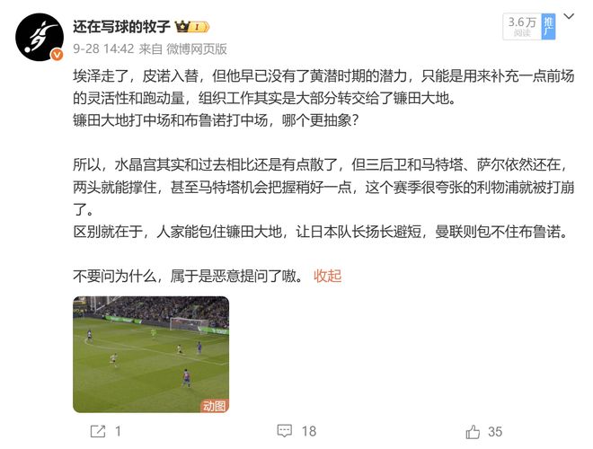 所以,考虑到这两头,后卫能前顶覆盖,也能垛后对抗,前锋线上有支点效果明显的中锋,具备冲击能力的二前锋,还有皮诺这样能在狭小范围内展现特点,也能在弱侧输出威胁的第三人,水晶宫会在什么时候暴露镰田大地和双中场所导致的中场空虚孱弱的问题?