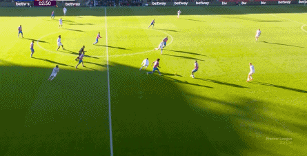 身高最高的拉克鲁瓦如此,打在边中卫上182cm的格伊和188cm的理查兹就不用说了,所以水晶宫的后卫线在抗打击和覆盖空间方面,处于一个很好的平衡点,这次理查兹启动出脚,紧接着和芒特争顶,就是一个很好的例子: