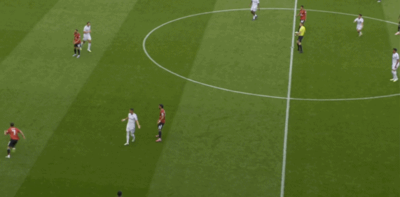 而且在第6分钟这次防守当中,在萨尔场外治伤的背景下,在局部以4防4,甚至短时间内3防4的状态顶住了曼联: